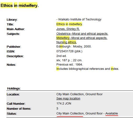 In the grey bar at the bottom you can see how many the Library has, where the item is shelved, and if it's Available or On loan. This book has three items at Wintec Library, and all are available.
